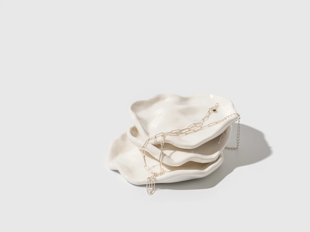 더욱 예쁘게, 더욱 아름답게 빚어내려 할수록 더욱 만족과 멀어지는 고민 끝에, 고민의 과정 자체를 형태로 나타낸 트레이입니다. 완성도를 높여가는 과정에서 실수가 있었던 부분도, 고민의 흔적도 모두 형태에 담겨 오히려 다양한 이야기가 담긴 형태의 트레이가 탄생하게 되었습니다. 보는 각도, 시선에 따라 형태가 달라 늘 새로운 느낌을 주며 반지, 목걸이 등 간단한 액세서리를 보관하기에 유용한 트레이입니다.